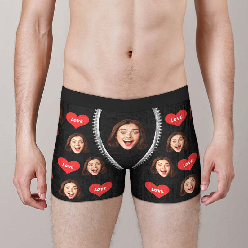 Custom Face Boxer Love Heart Boxer Briefs Birthday Gift for Boyfriend Wedding Gift