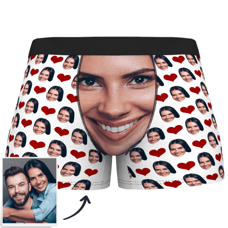 Custom Face Boxer Shorts 3D Online Preview Personalized Photo Boxer with Love Heart