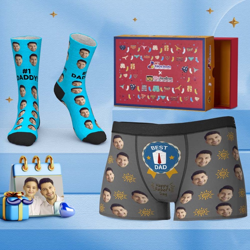 Father's Day Gifts Custom Face Boxer Shorts And Socks Set Gifts For Dad #1 Daddy Co-Branding Set