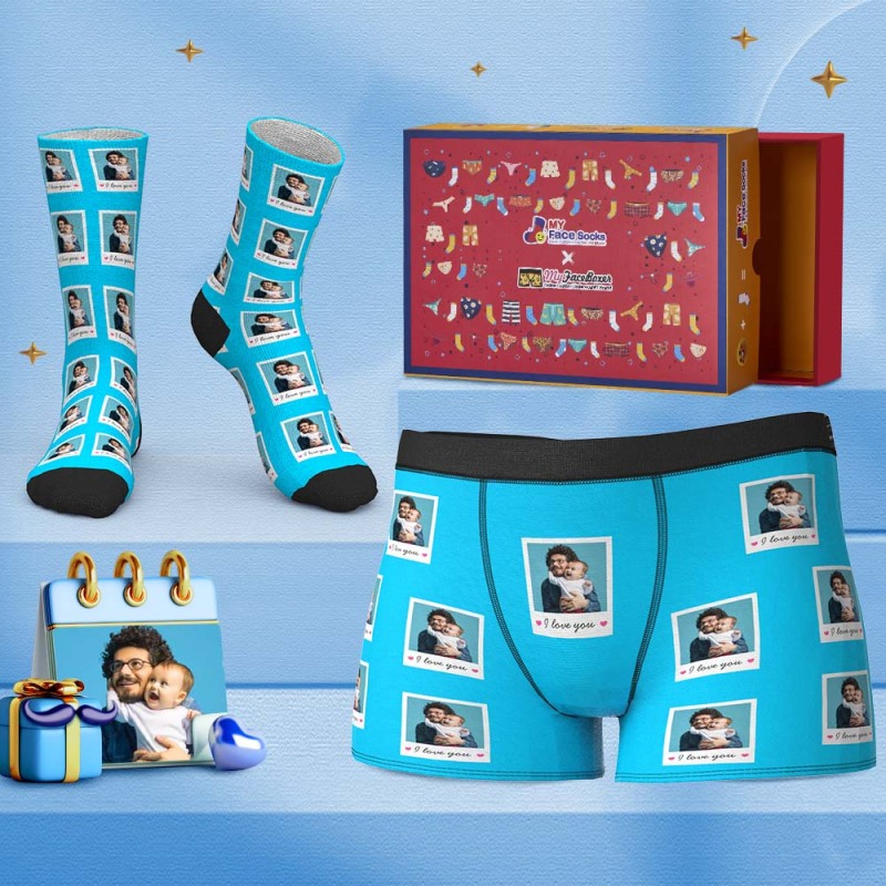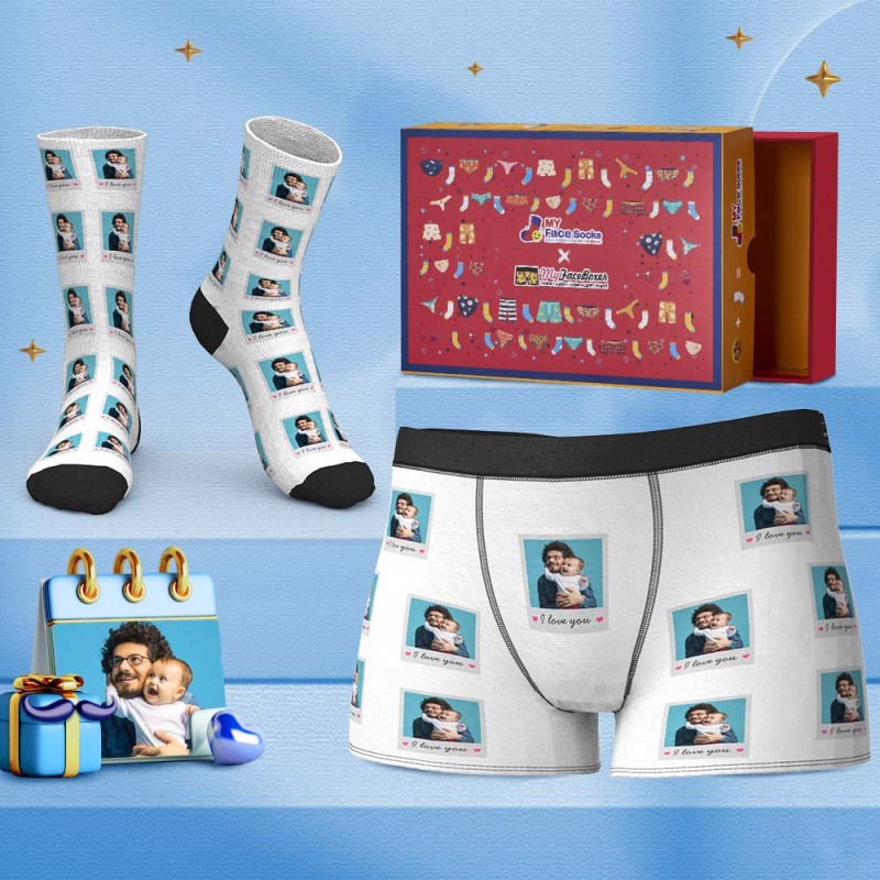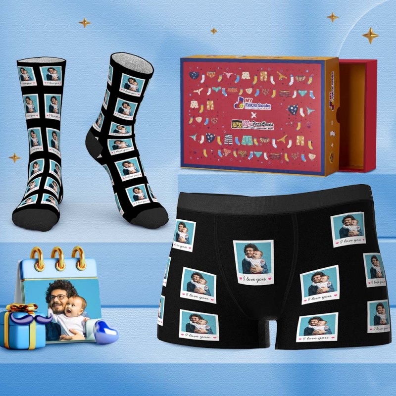 Father's Day Gifts Custom Face Boxer Shorts And Socks Set Gifts To Dad I Love You Polaroid Co-Branding Set