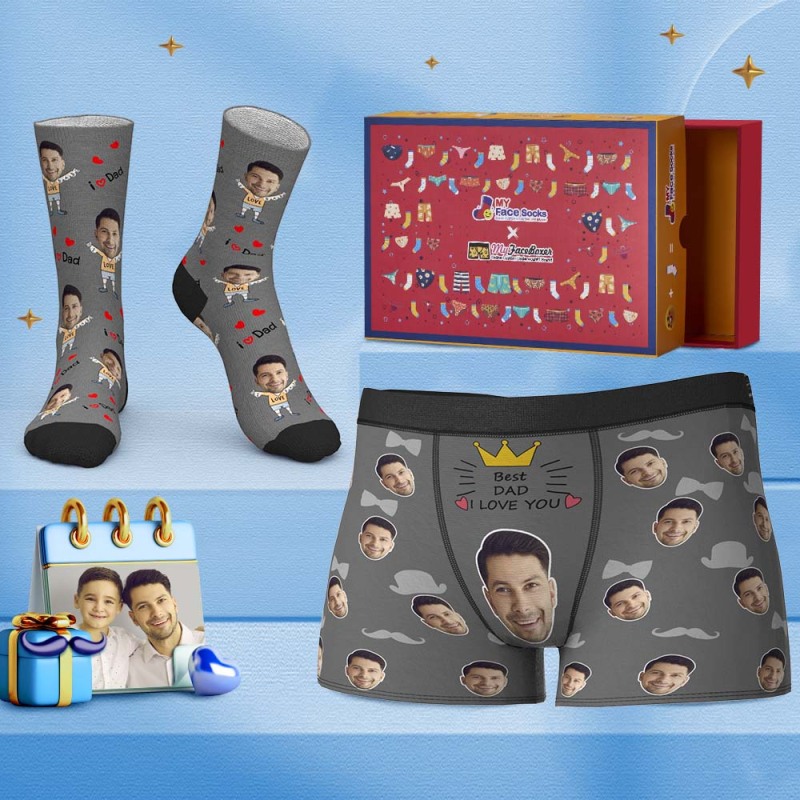 Father's Day Gifts Custom Face Boxer Shorts And Socks Set Gifts To The Dearest Dad Co-Branding Set