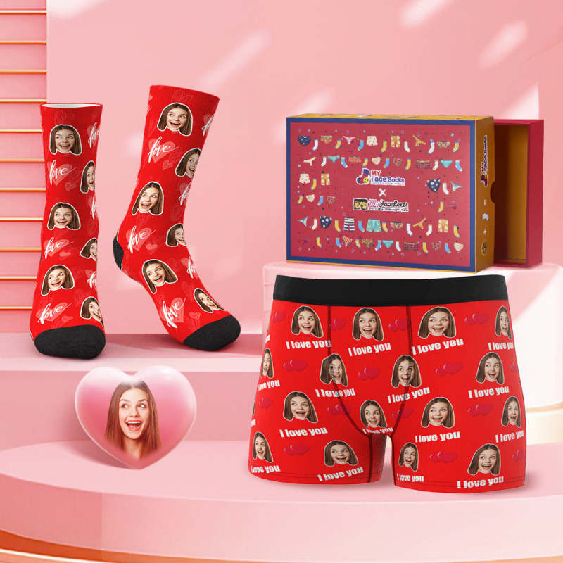 Valentine's Day Gifts Custom Face Boxer Shorts And Socks Set I Love You Co-Branding Set
