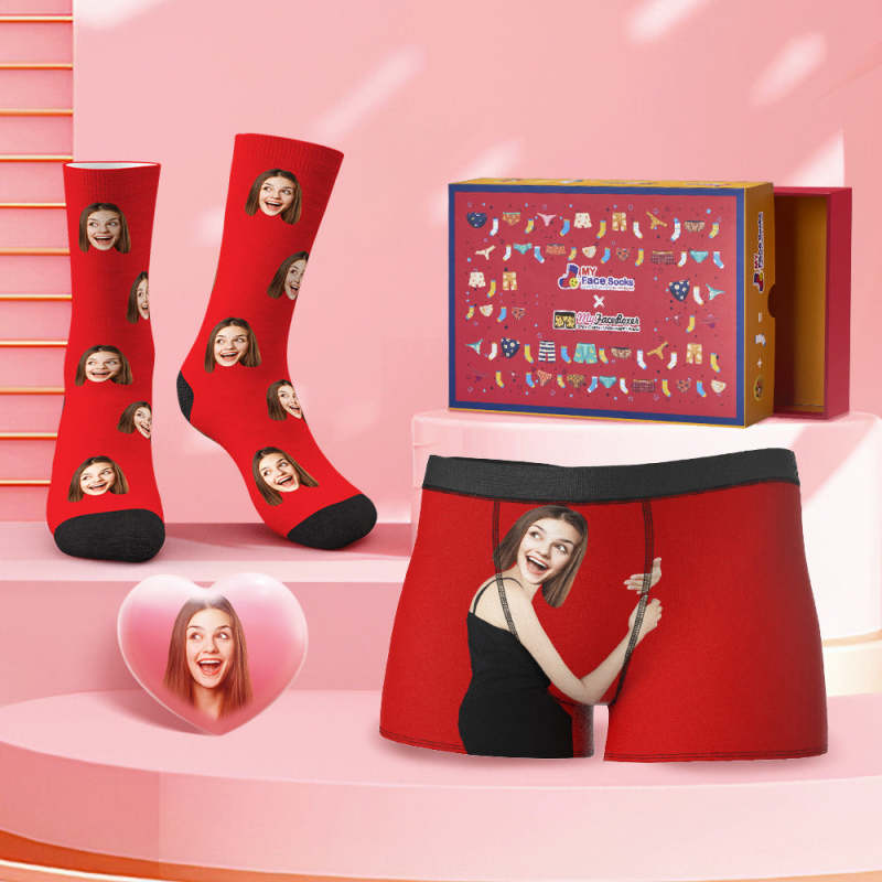 Custom Face Boxer Shorts And Socks Set Love Hug Co-Branding Set