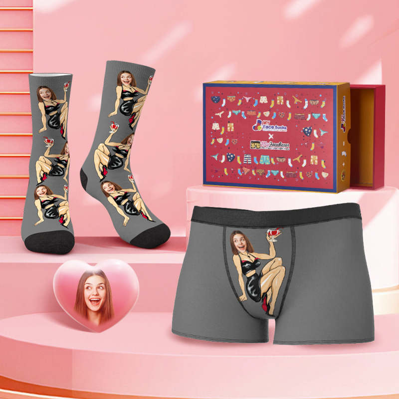 Custom Face Boxer Shorts And Socks Set Sexy Girl Valentine's Day Gift Co-Branding Set