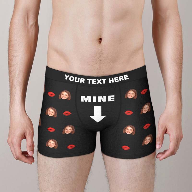 Custom Face Boxers Brief with Lip Print You Are Mine Valentine's Day Gifts