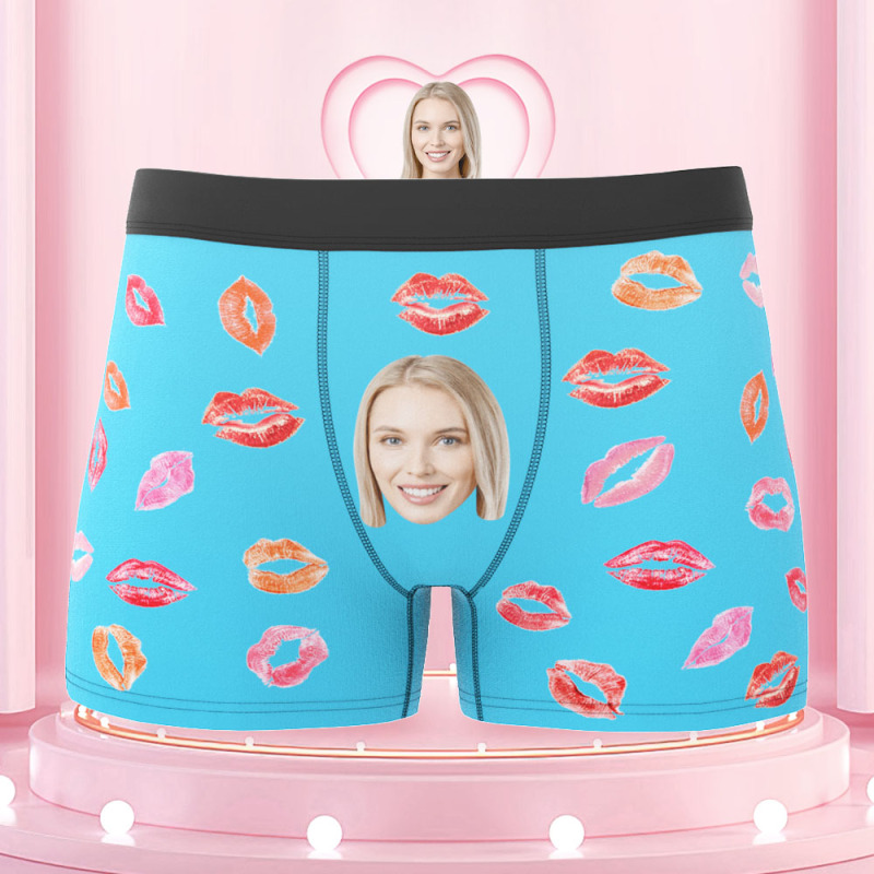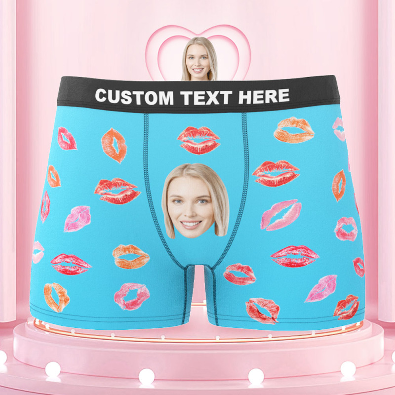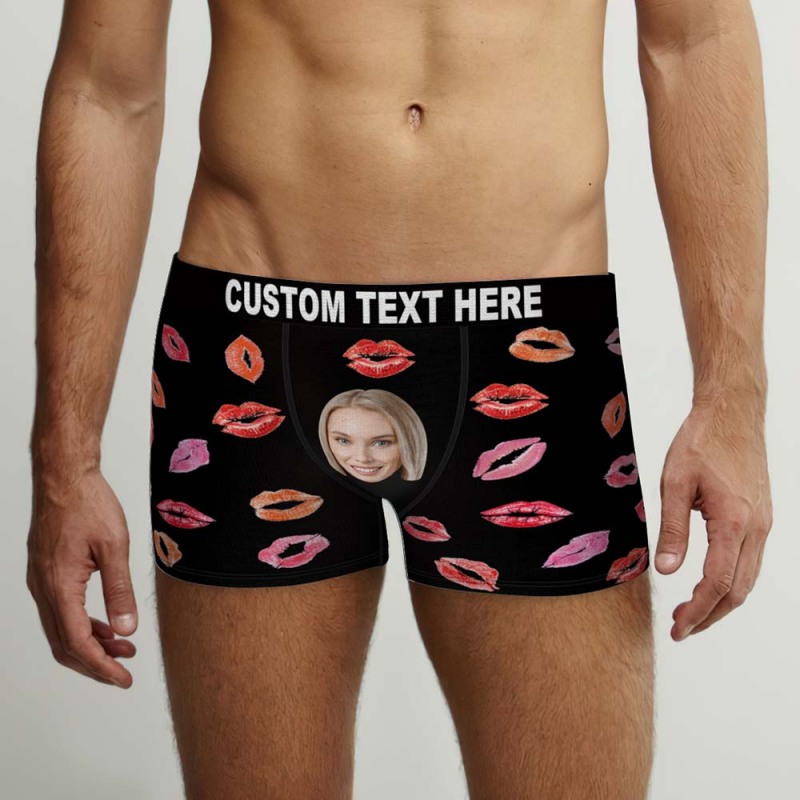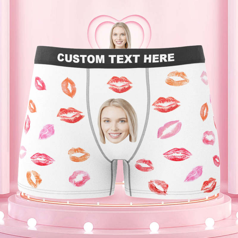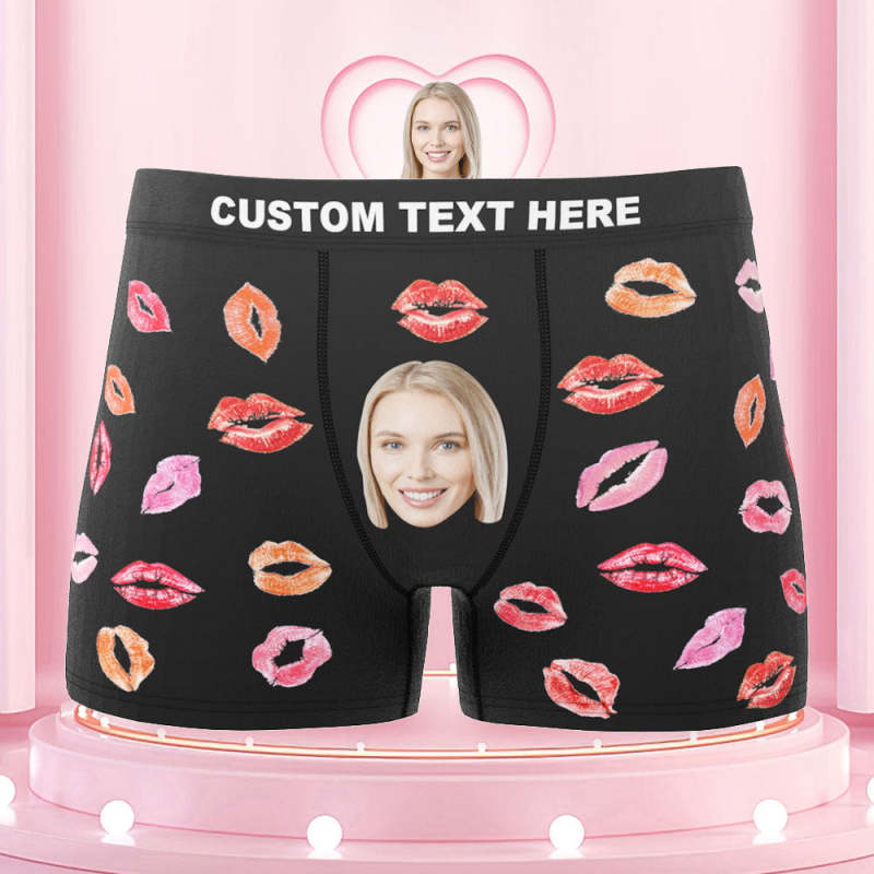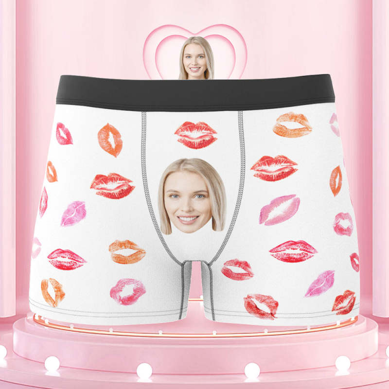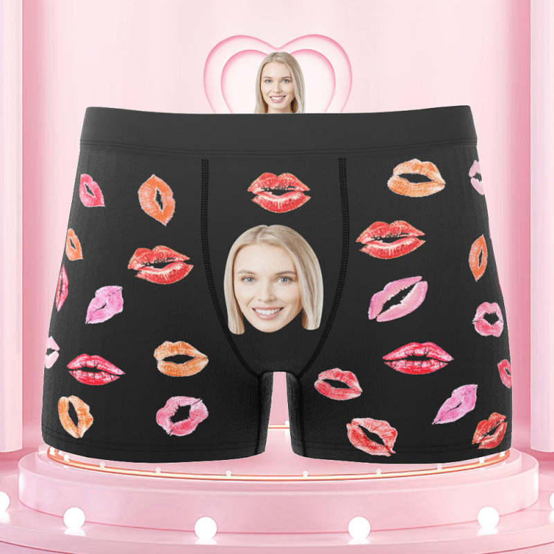 Custom Face Boxers Briefs Colorful Lipstick of Love Personalized Photo Underwear Gift for Him