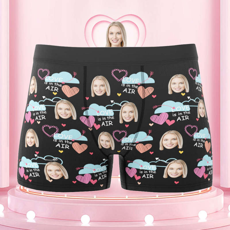 Custom Face Boxers Briefs Love Is In the Air Personalized Photo Underwear Gift for Him