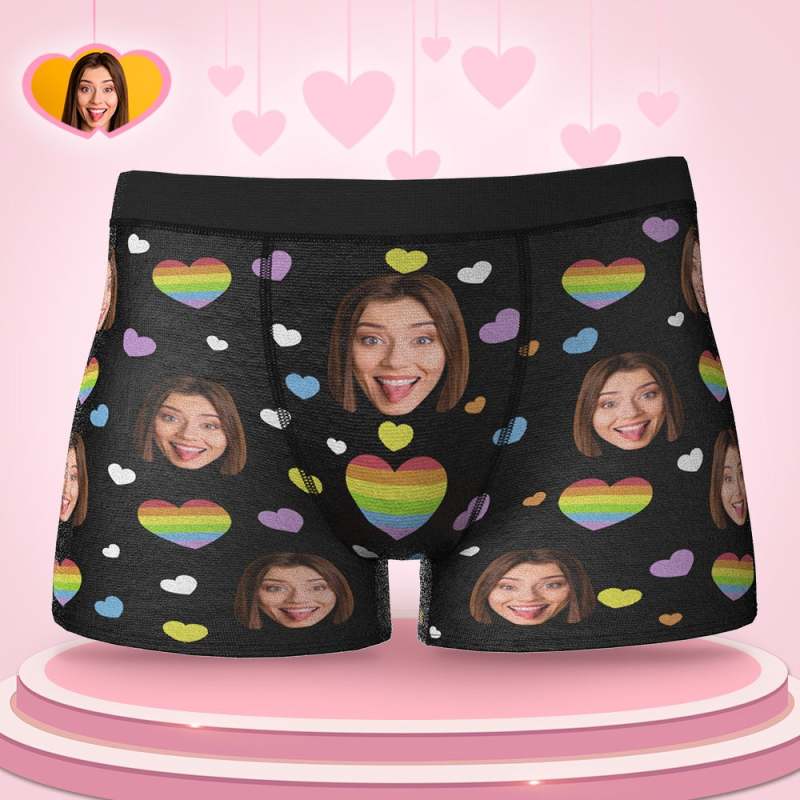 Custom Face Boxers Full of Colorful Hearts Valentine's Day Gifts For Him