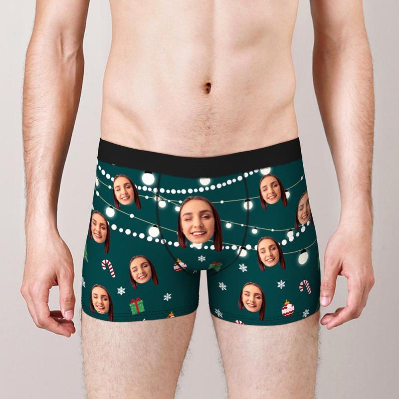 Custom Face Boxers Shorts Christmas Lights Personalised Photo Underwear Christmas Gift for Men