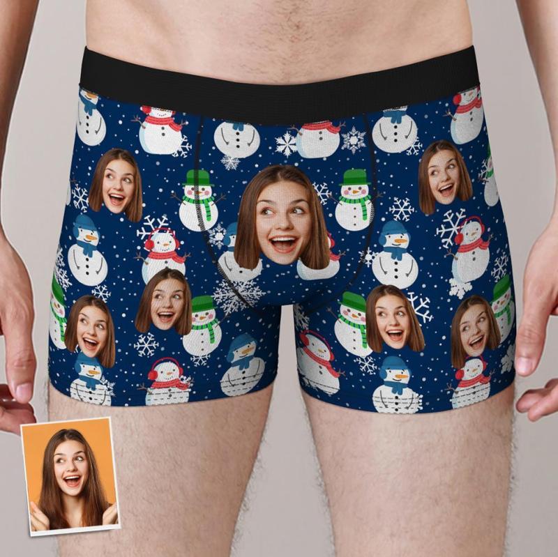 Custom Face Boxers Shorts Christmas Snowman Personalised Photo Underwear Christmas Gift for Men