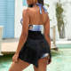 Custom Face Boyfriend Women's Strappy Neck Dress Swimsuit - Blue Grid