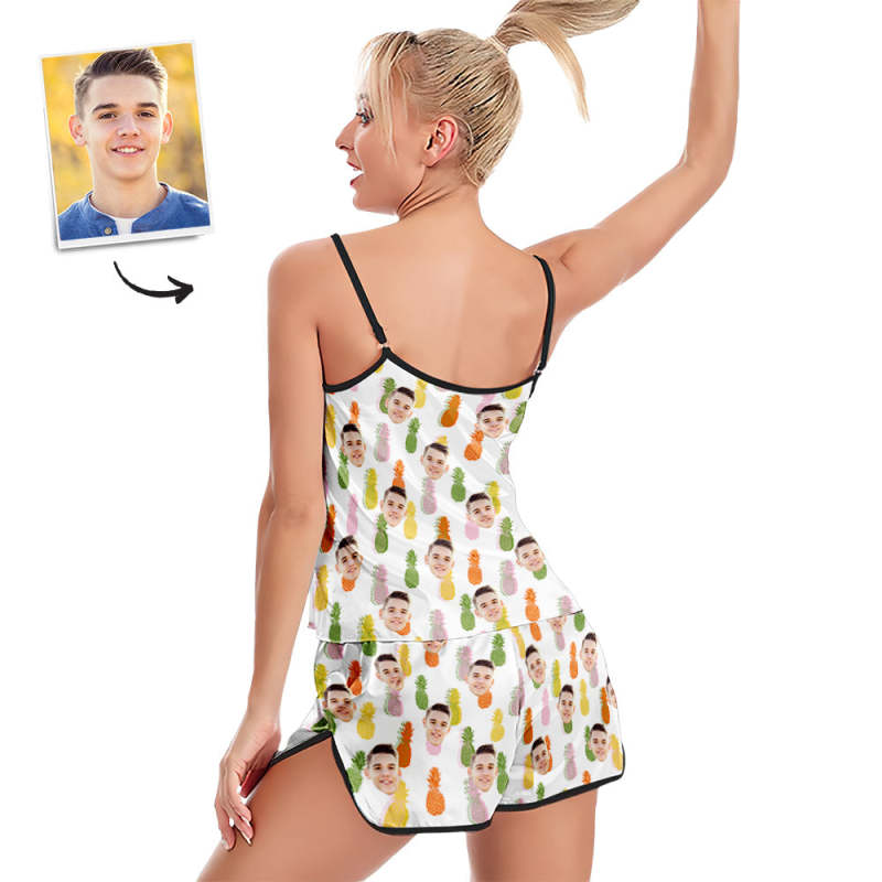 Custom Face Camisole Sleepwear Colorful Pineapples Personalized Lingerie Set Summer Pajamas