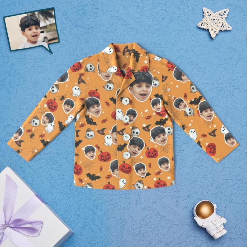 Custom Face Children's Halloween Pajamas For Kids Pumpkin And Little Ghost