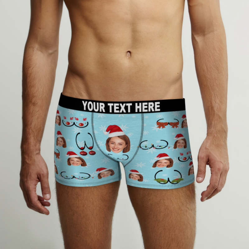 Custom Face Christmas Bust Boxer Briefs Funny Personalized Face Underwear Christmas Gift