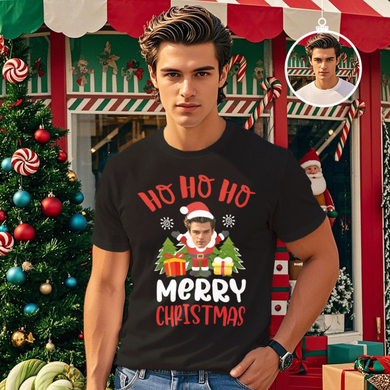 Custom Shirt Personalized Face T-shirts Christmas Green T-shirts Optional Custom Shirt Personalized Face Santa T-shirts
