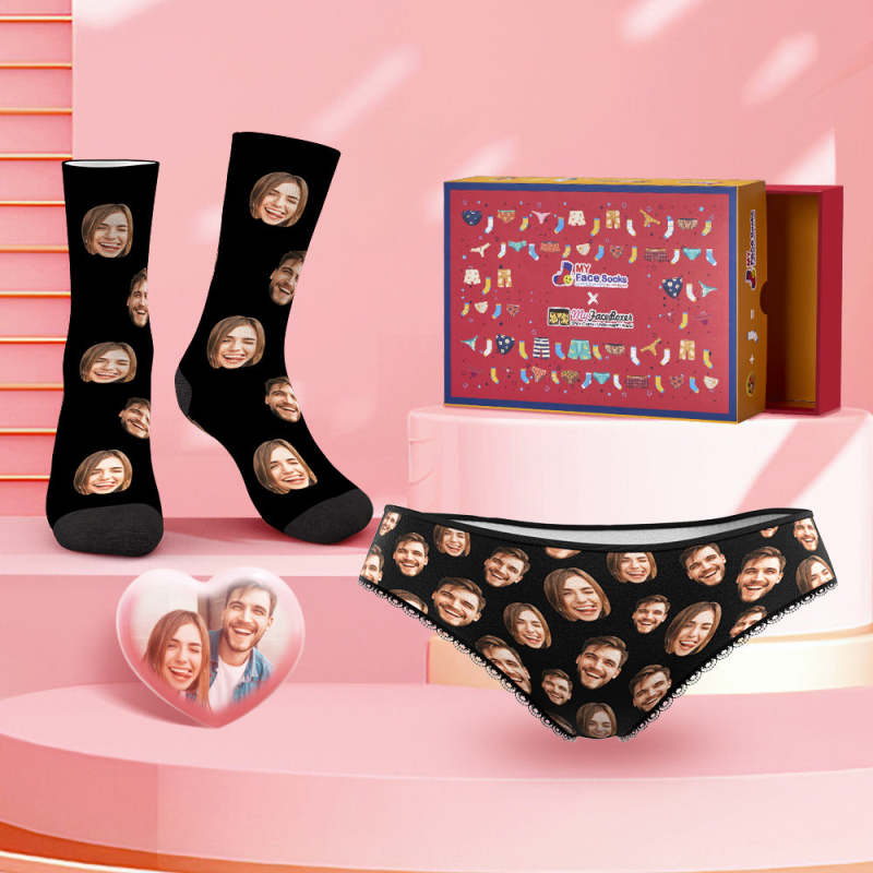 Custom Face Colorful Panties And Socks Set For Her Co-Branding Set