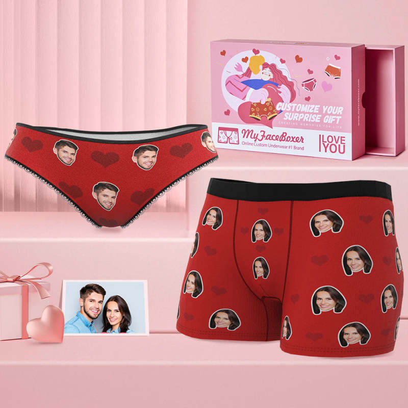 Custom Face Couple Matching Underwear Multicolor Sweet Love Heart Personalized Funny Underwear Gift for Lovers