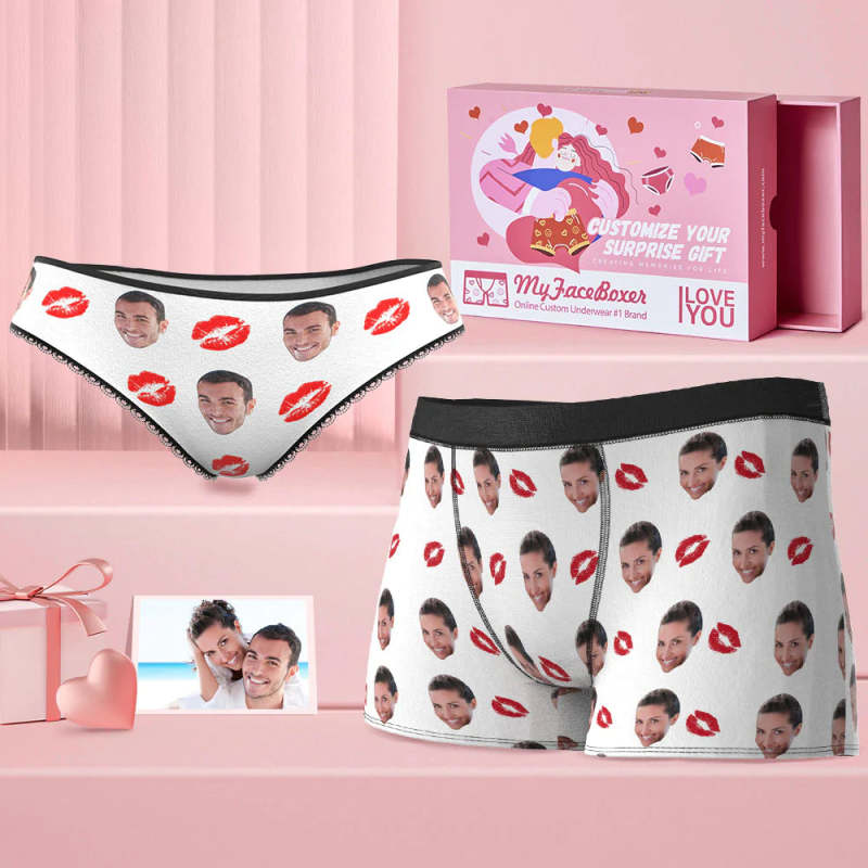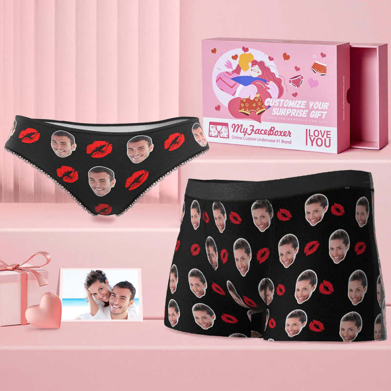 Custom Face Couple Matching Underwear Red Lipstick Personalized Funny Underwear Gift for Lovers