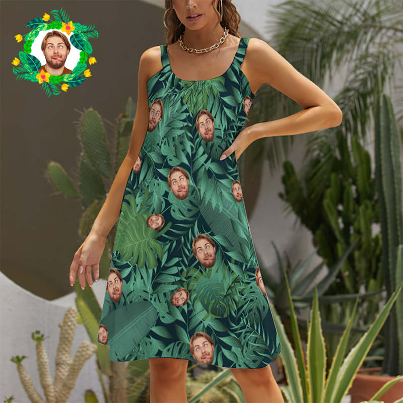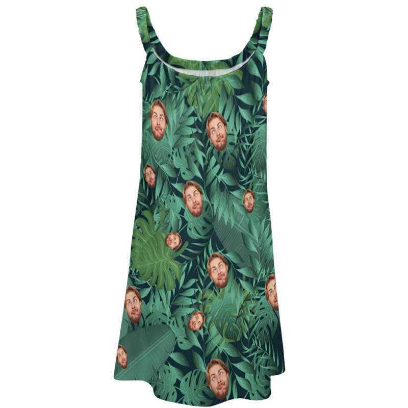 Custom Face Daytime Sleep Dress Personalized Photo Women Long Nightdress Cool leaves