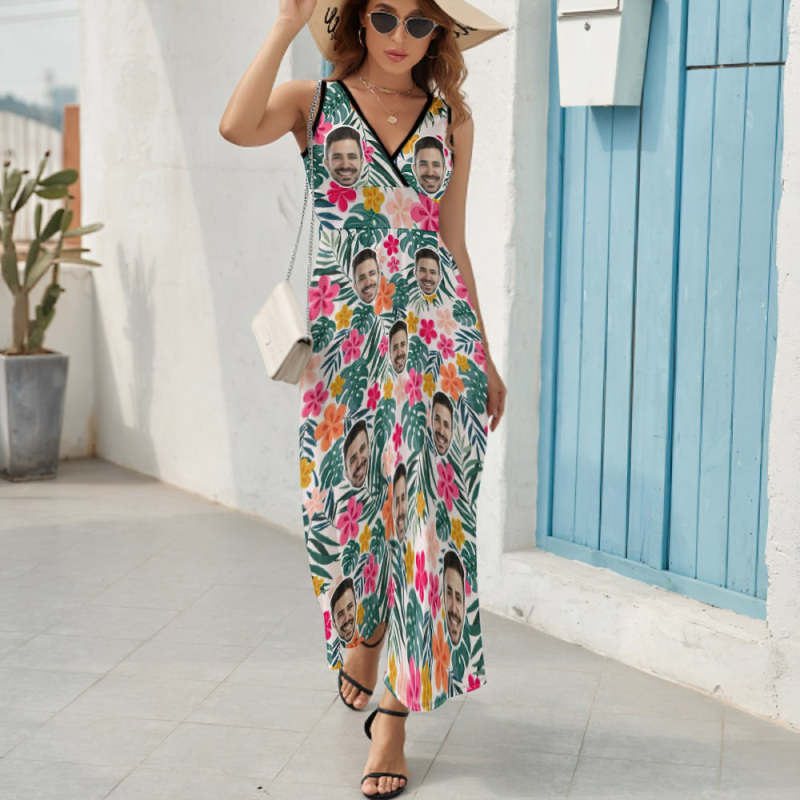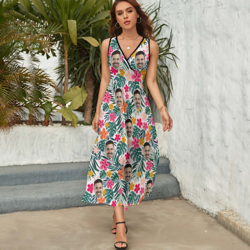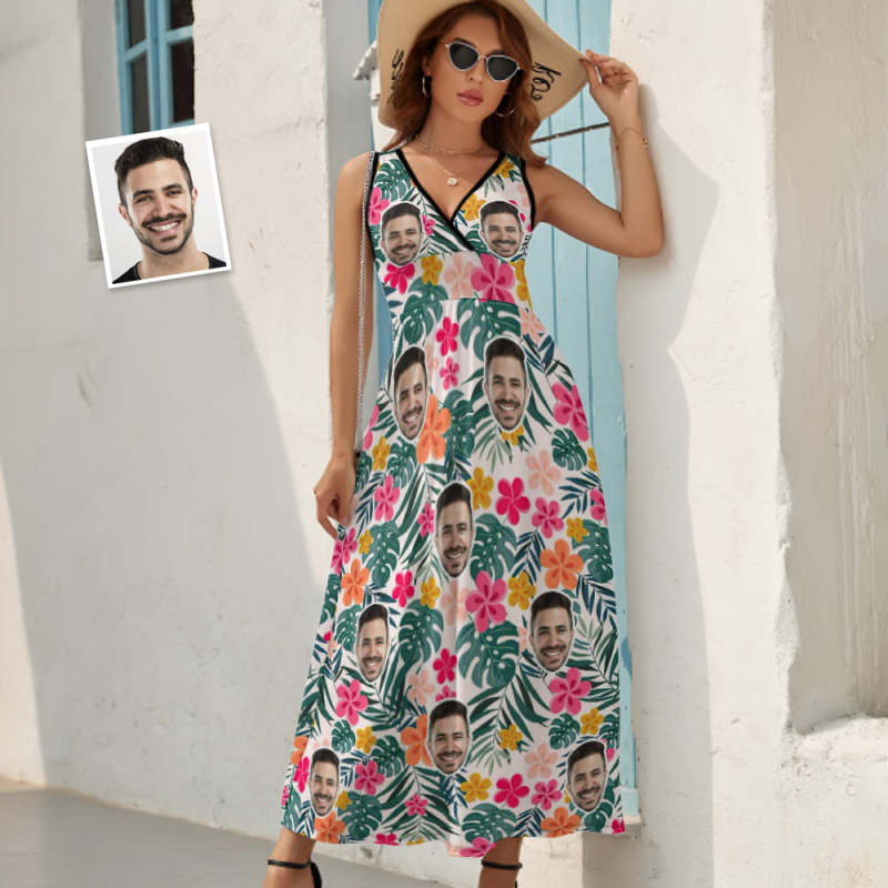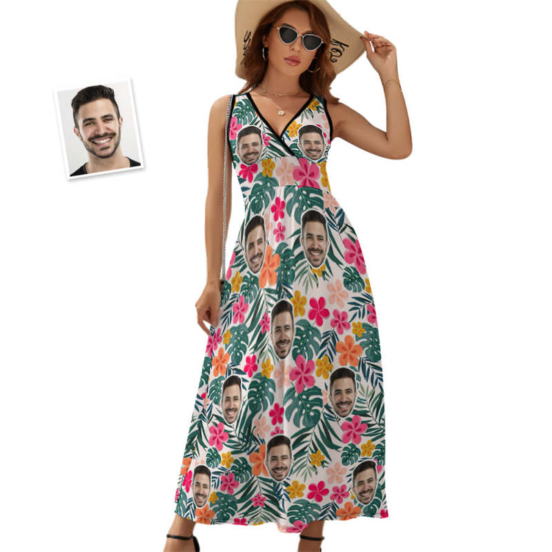Custom Face Dress Personalized Hawaiian Floral Long Skirt Gift for Her