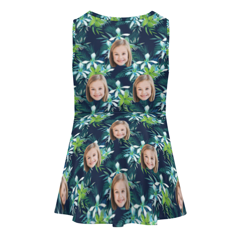 Custom Face Dress Personalized Summer Hawaiian Girls'Dresses Big Flower for Kids
