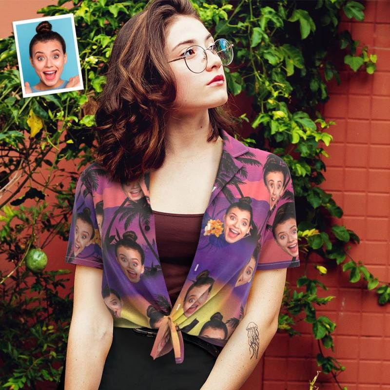 Custom Face Hawaiian Shirt for Women Personalized Women's Photo Hawaiian Shirt Gift for Her - Purple Sunset