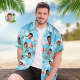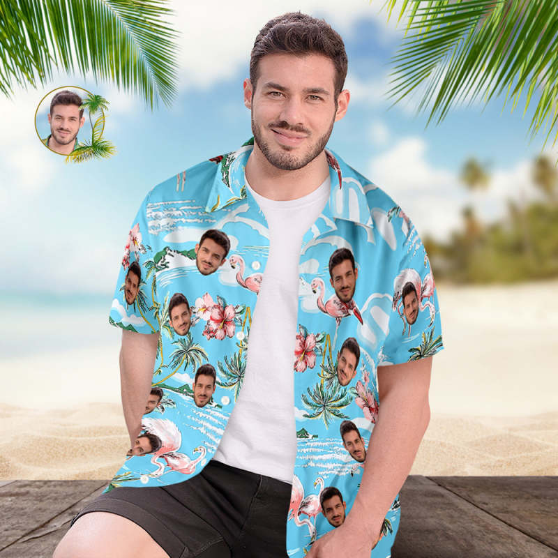 Custom Face Hawaiian Shirt Men's All Over Print Aloha Shirt Gifts for Him - Pink Flamingos and Flowers