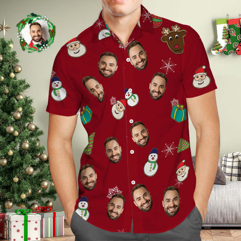 Custom Face Hawaiian Shirt Personalized Photo Red Hawaiian Shirts Santa Claus Merry Christmas