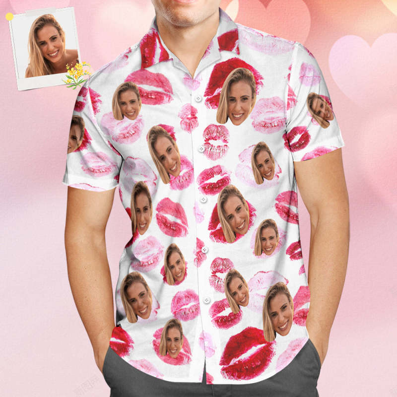 Custom Face Hawaiian Style Red lips Personalized Shirt Couple Outfit