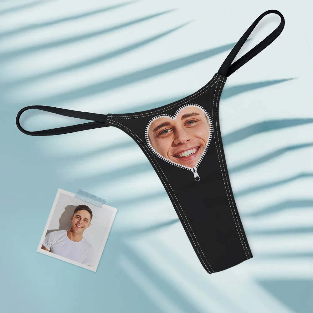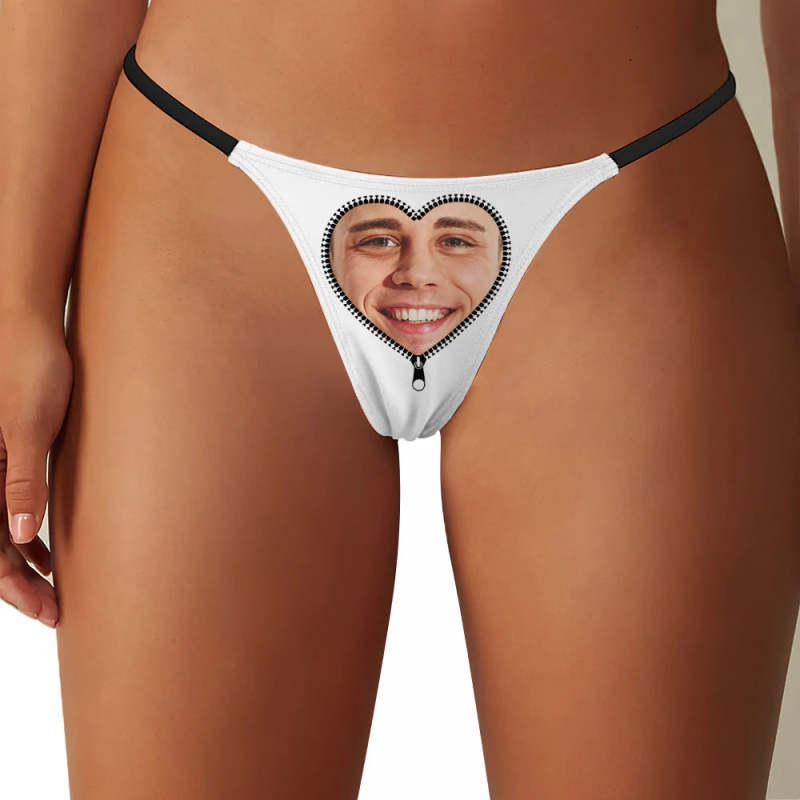 Custom Face Heart-shaped Zipper Women's Tanga Thong Gift for Her