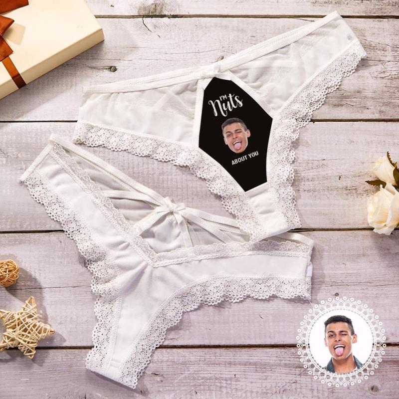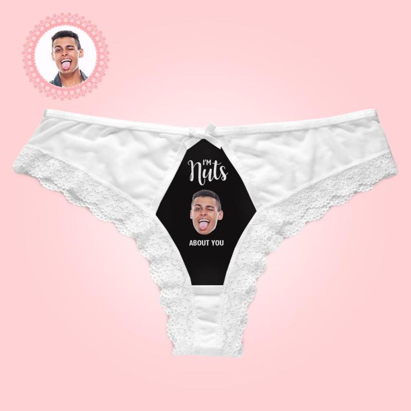 Custom Lace Thong Sexy Lace Panties Funny Gift with Boyfriend Face - I'm nuts about u