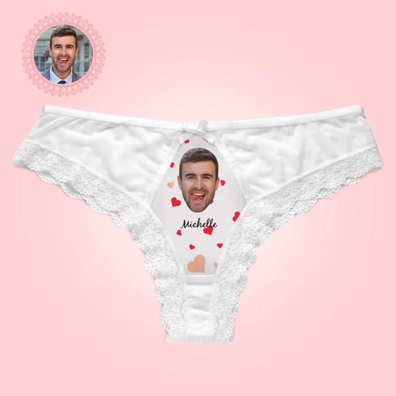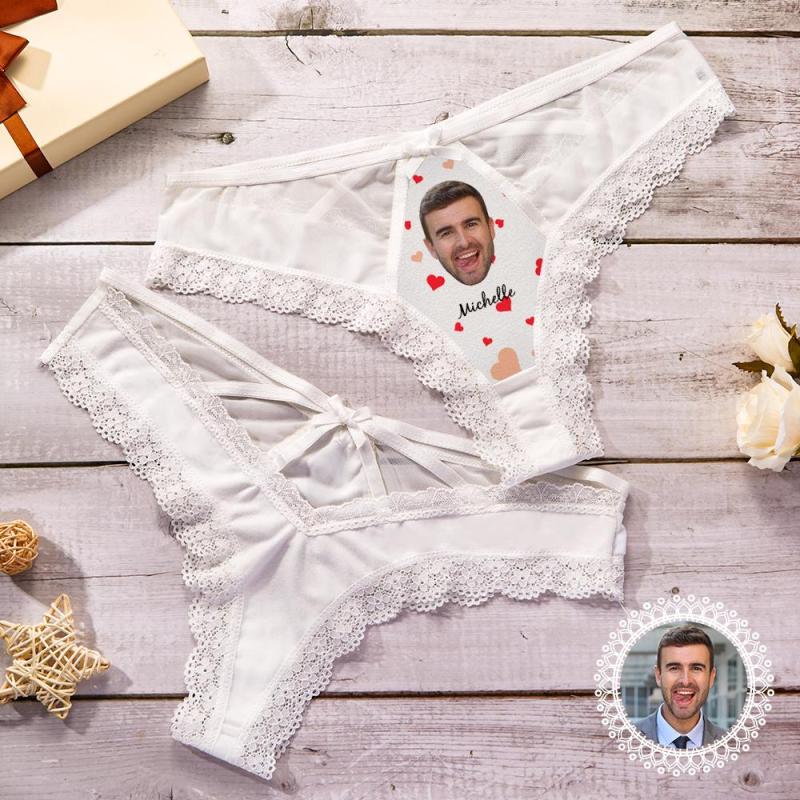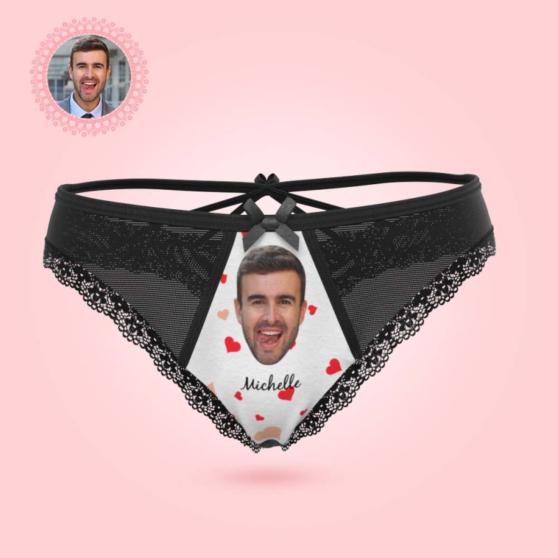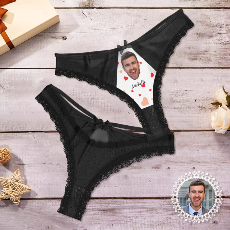 Custom Face Lace Thong Sexy Lace Panties Funny Gift with Boyfriend Name