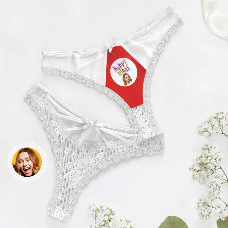 Custom Face Lace Thong Personalized Underwear Unique Anniversary gift for Her Wedding Gift