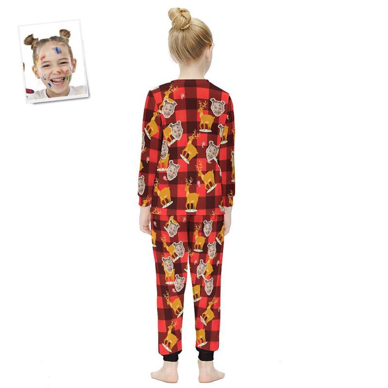 Custom Face Long Sleeve Pajamas Kids Suit - Christmas Plaid Fawn