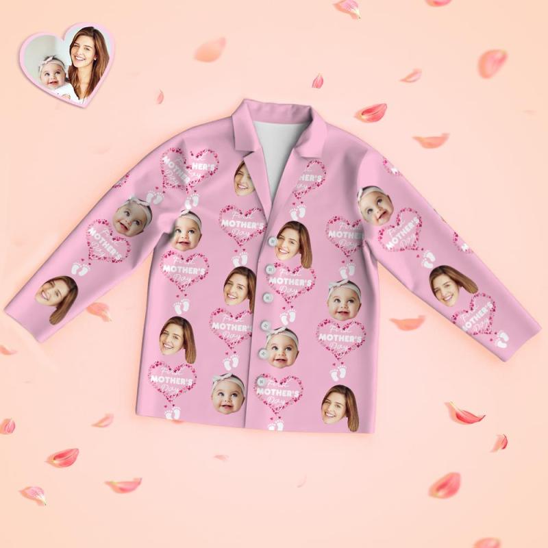Custom Face Long Sleeve Pajamas Sleepwear Set - First Mother's Day