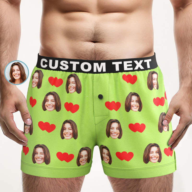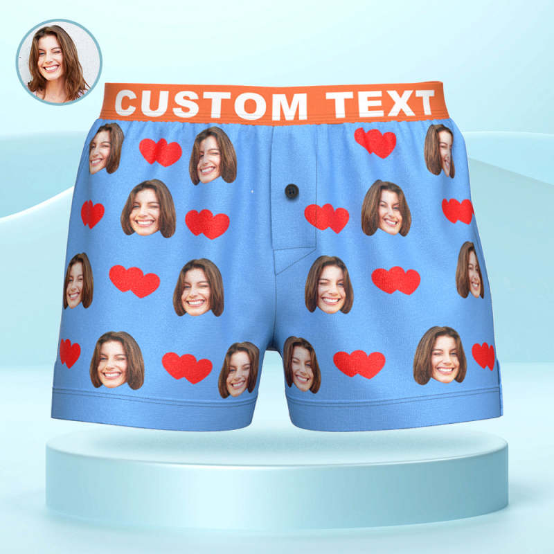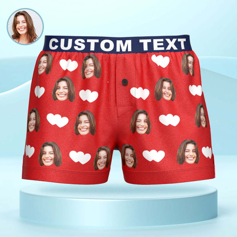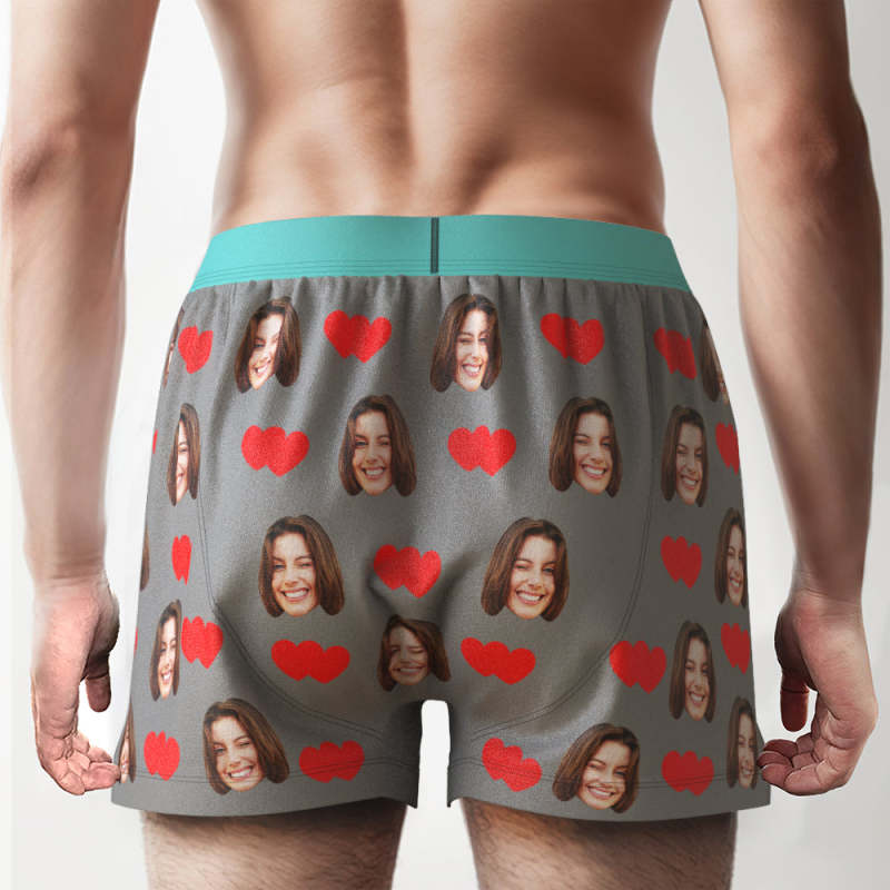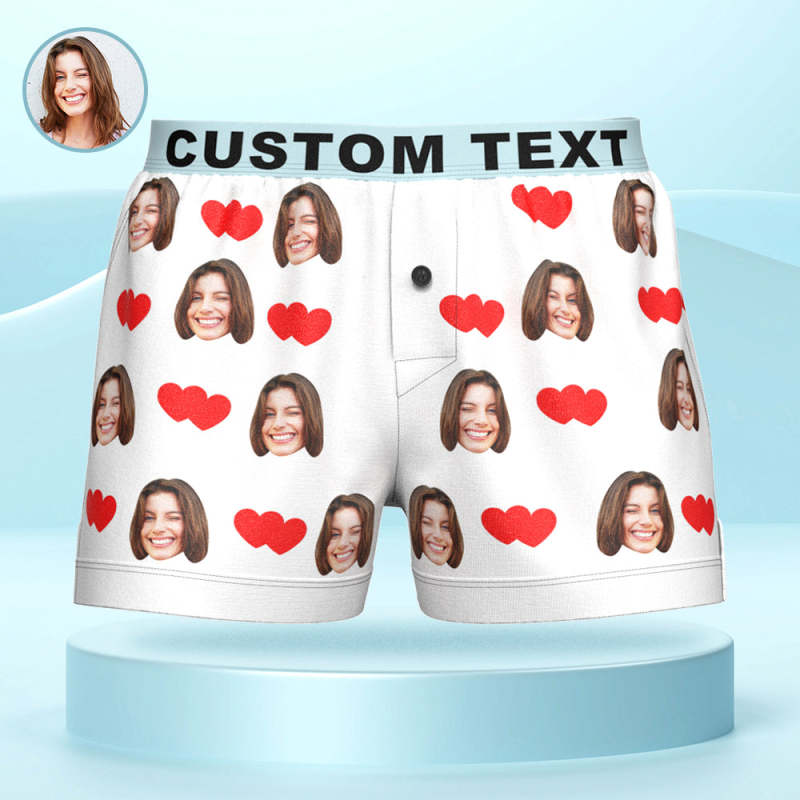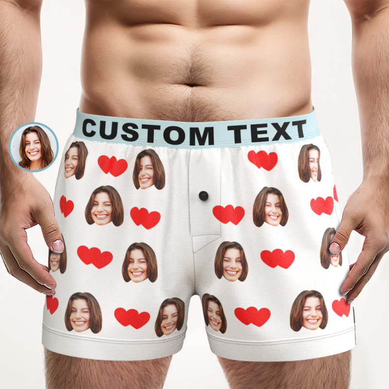 Custom Face Love Hearts Boxer Shorts Personalized Waistband Casual Underwear for Him