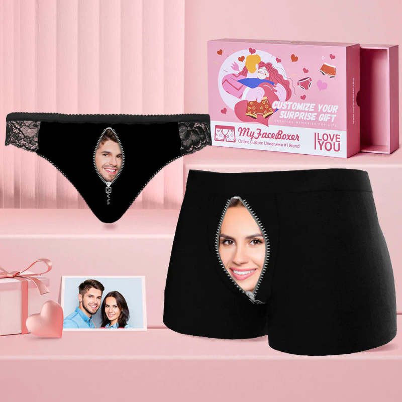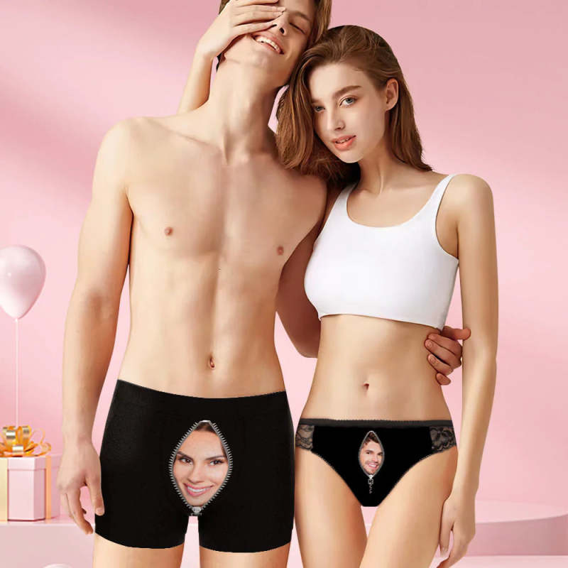 Custom Face Matching Underwear for Couples Zipper Style Valentine's Day Gift
