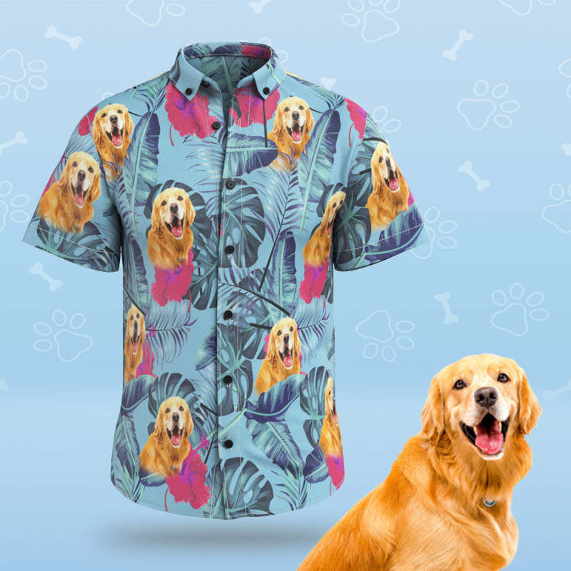 Custom Face Men Hawaiian Shirts Personalized Cute Dog Face for Pet Lover - Smoke Blue