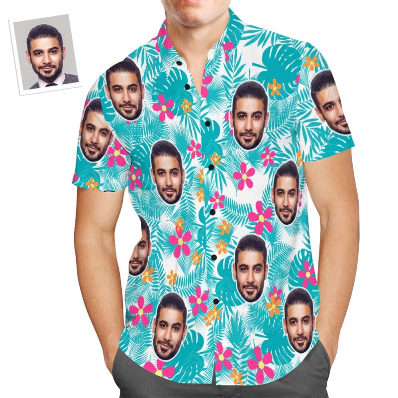 Custom Face Men's All Over Print Aloha Hawaiian Shirt Cute Flowers and Leaves