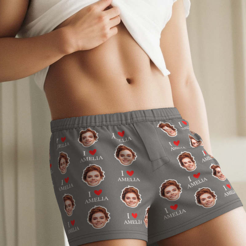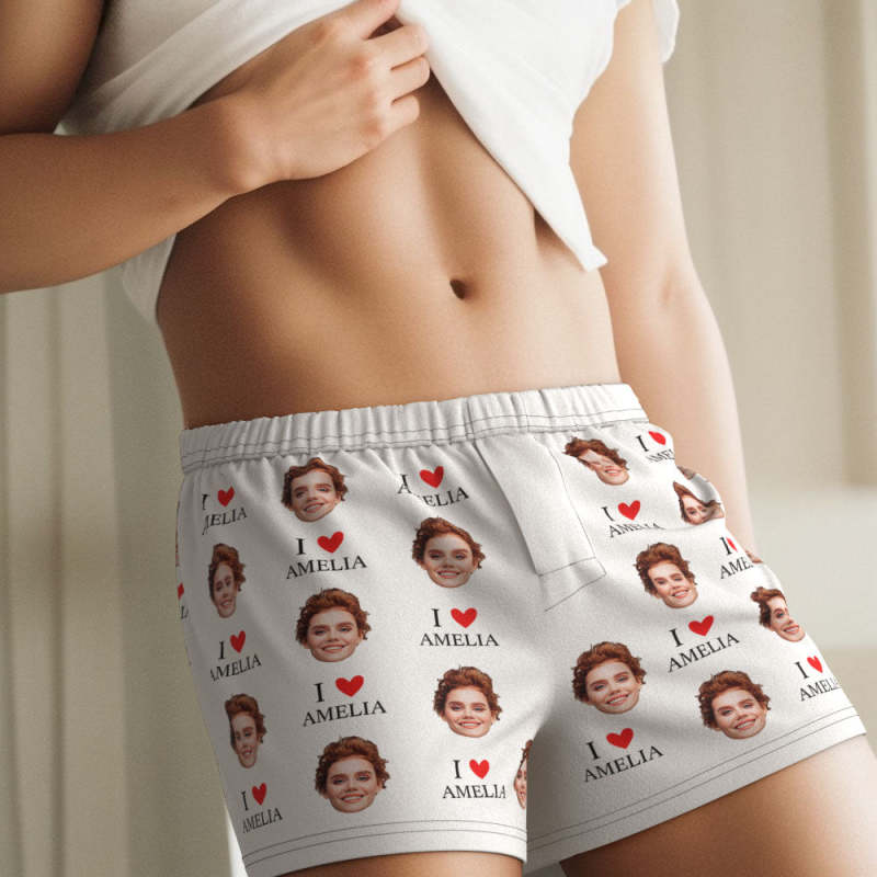 Custom Face Multicolor Boxer Shorts I Love You Personalized Photo Underwear Gift for Him
