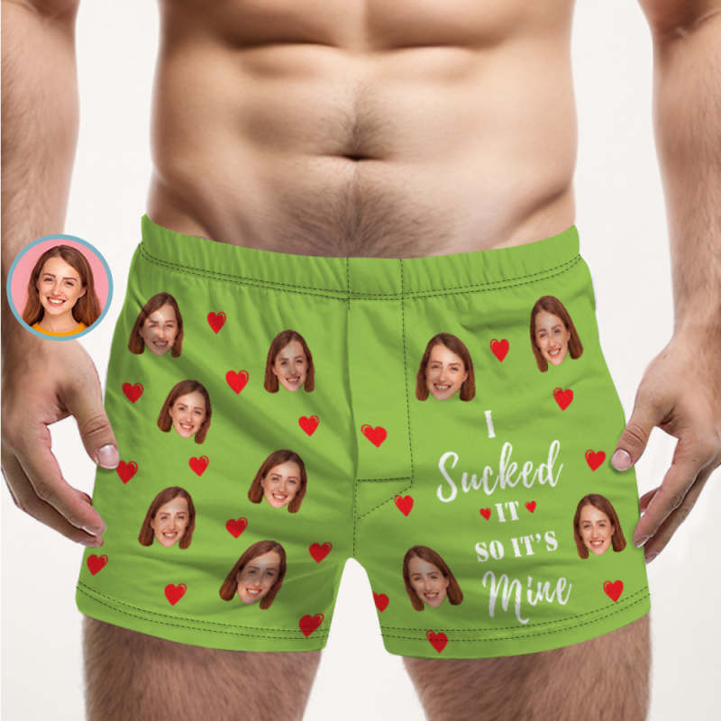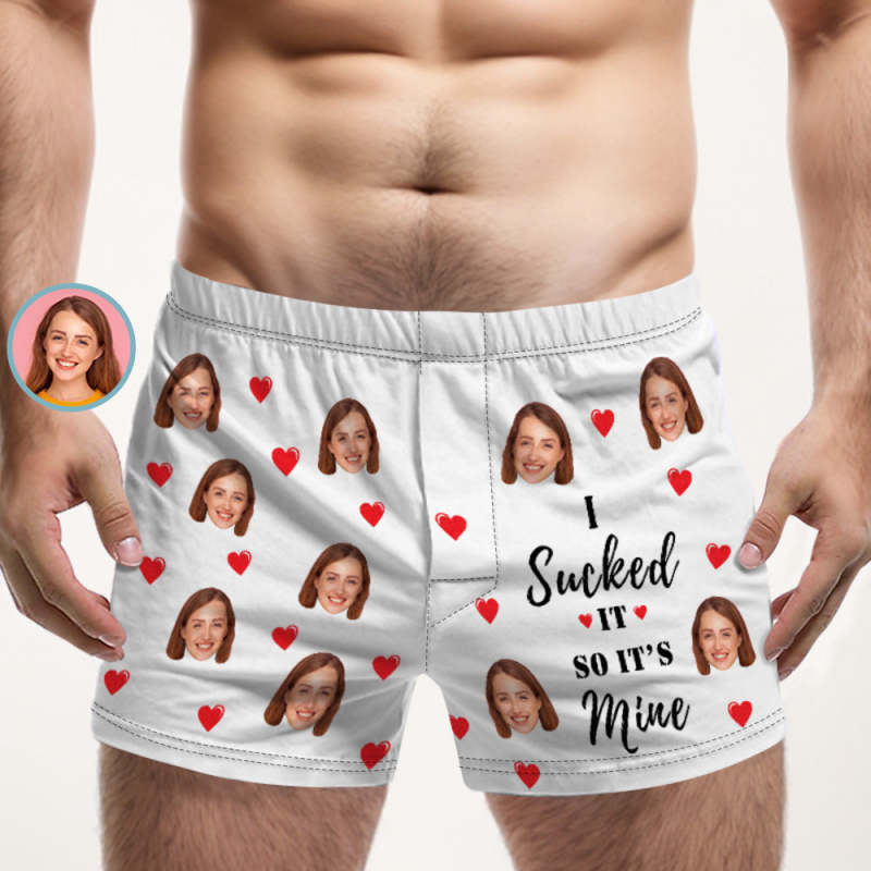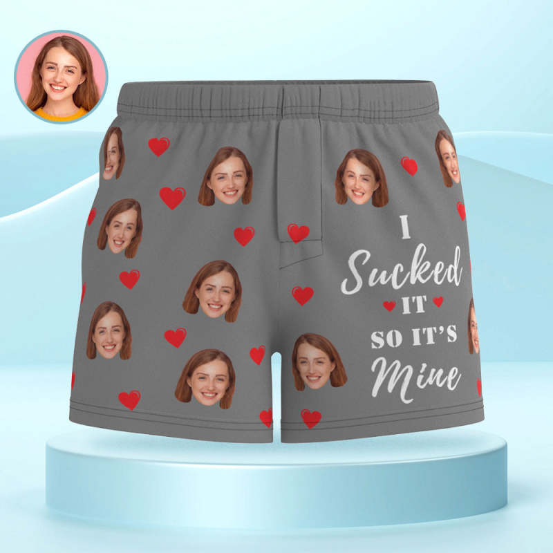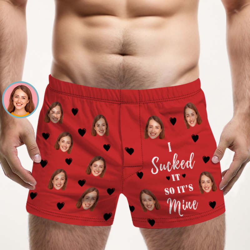 Custom Face Multicolor Boxer Shorts I SUCKED IT SO IT'S MINE Personalized Photo Underwear Gift for Him
