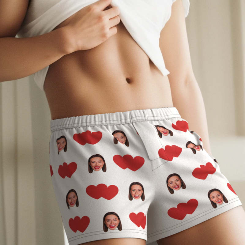 Custom Face Multicolor Boxer Shorts Red Heart Personalized Photo Underwear Gift for Him