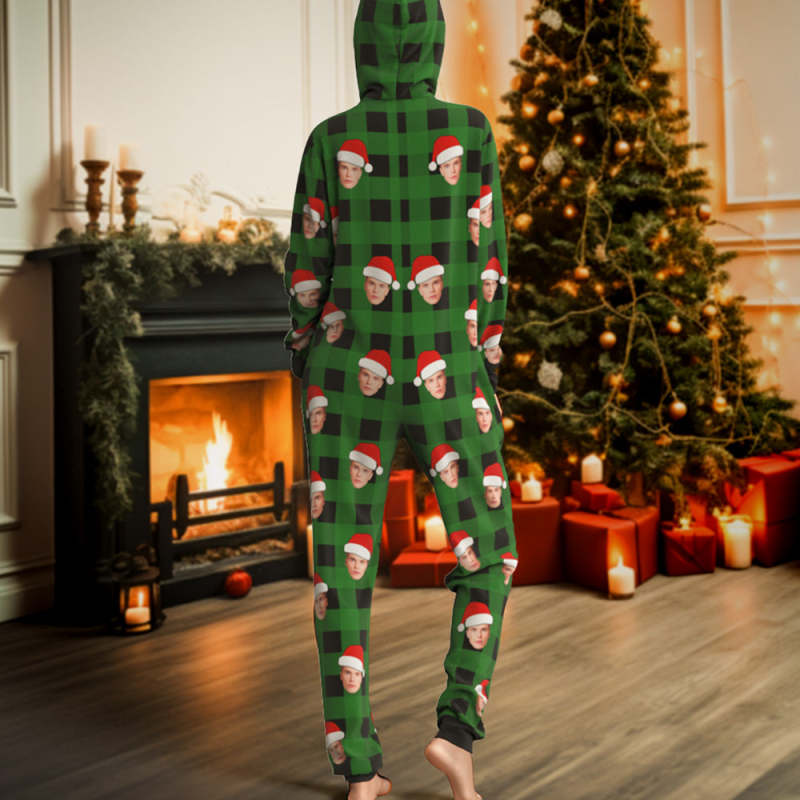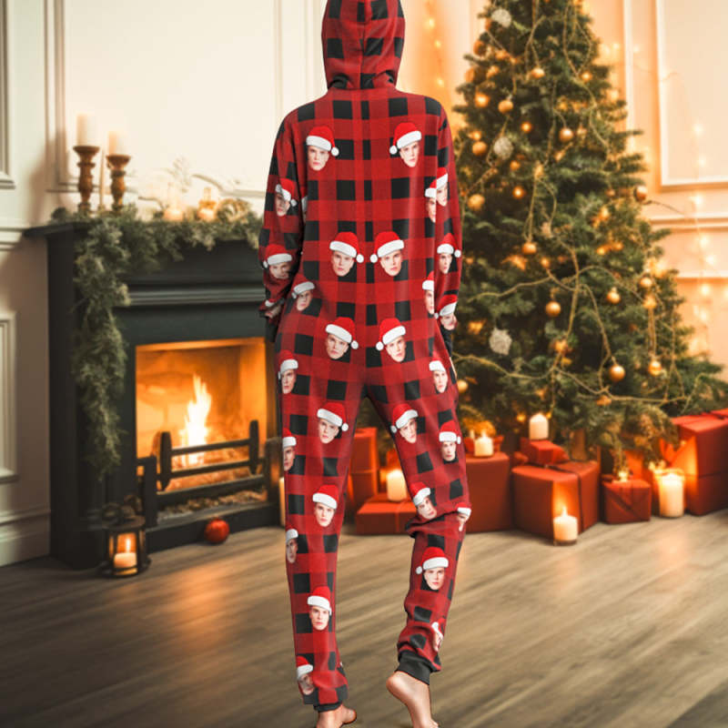 Custom Face Onesies Pajamas One-Piece Sleepwear Red and Black Plaid Jumpsuit Homewear Christmas Gift