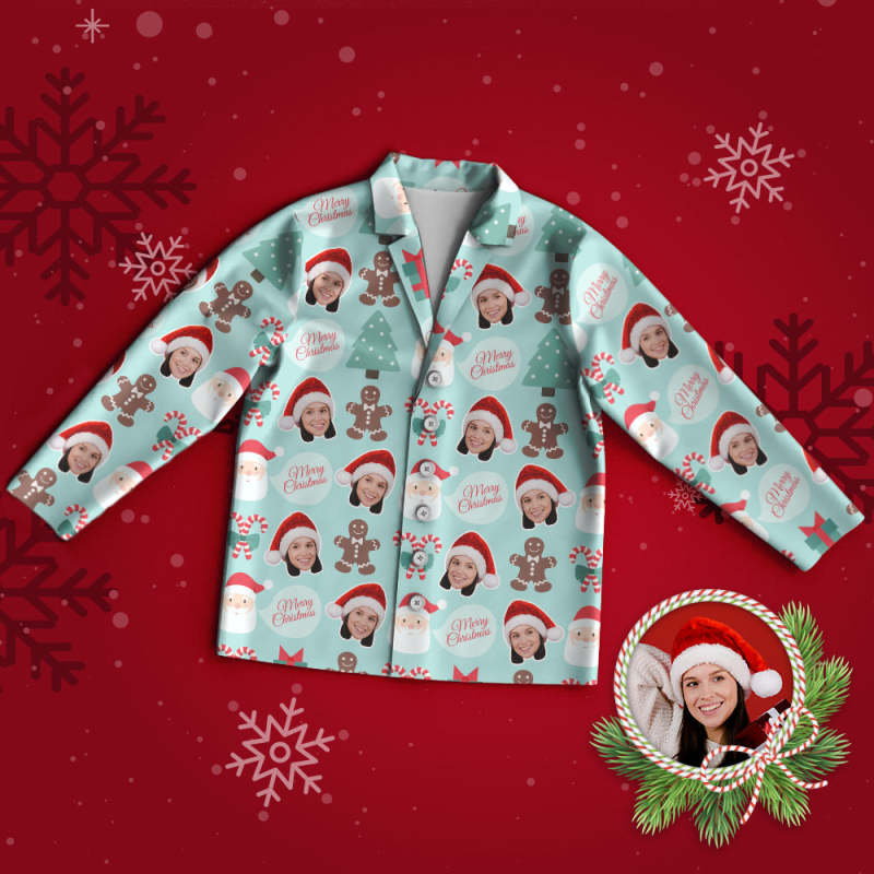 Custom Face Pajama Personalized Photo Pajamas Santa Claus and Gingerbread Man Merry Christmas