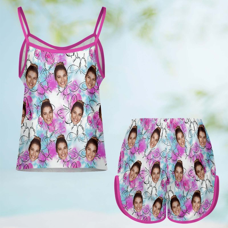 Custom Face Pajamas Personalized Satin Suspender Pajamas for Women
