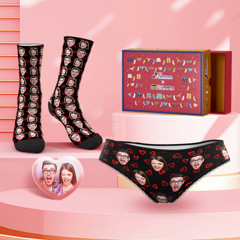 Custom Face Panties And Socks Set For Her Little Love Heart Co-Branding Set