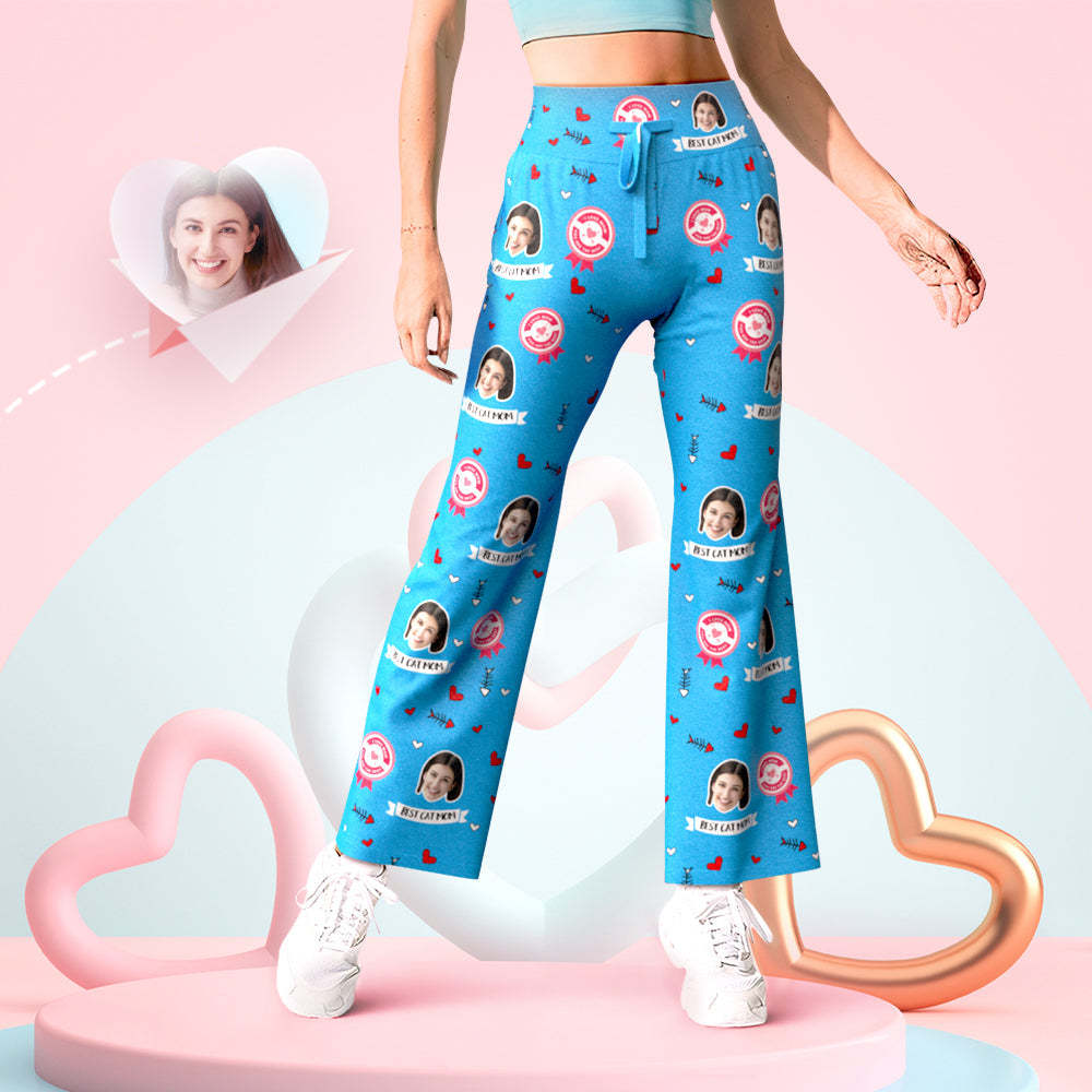 Custom Face Pants Blue Best Cat Mum Fish Bones Yoga Slacks Mother's Day Gift