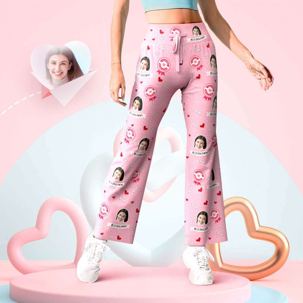 Custom Face Pants Pink Best Dog Mum Fish Bones Yoga Slacks Mother's Day Gift