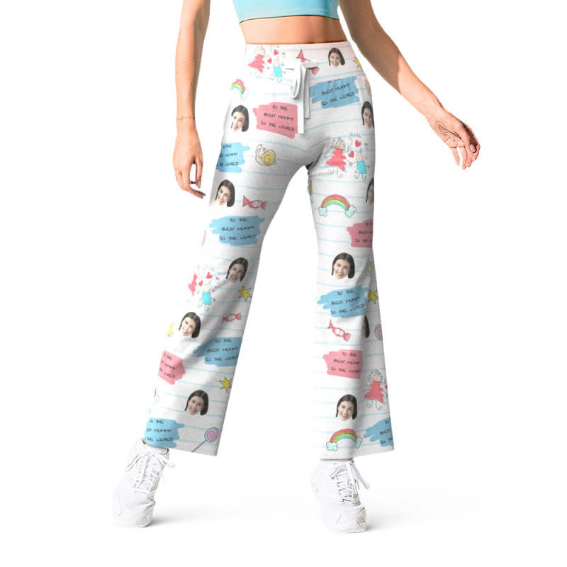 Custom Face Pants White Best Mummy In The World Yoga Slacks Gift for Mother