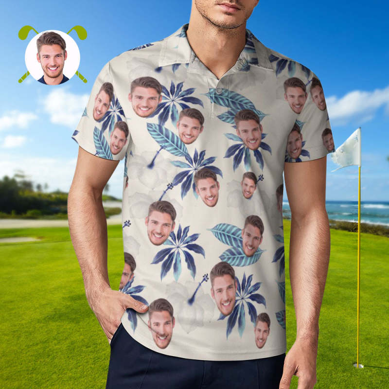 Father's Day Gifts Custom Polo Shirt For Men Flowers and Leaves Personalized Hawaiian Golf Shirts
